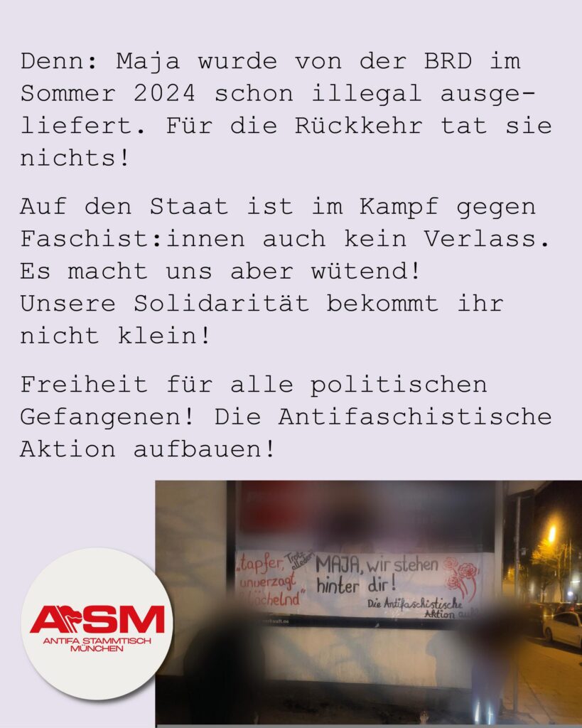Denn: Maja wurde von der BRD im Sommer 204 schon illegal ausgeliefert. Für die Rückkehr tat sie nichts!