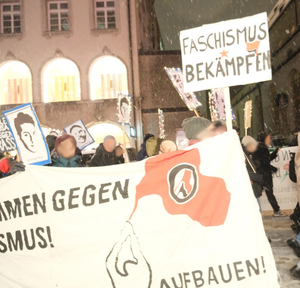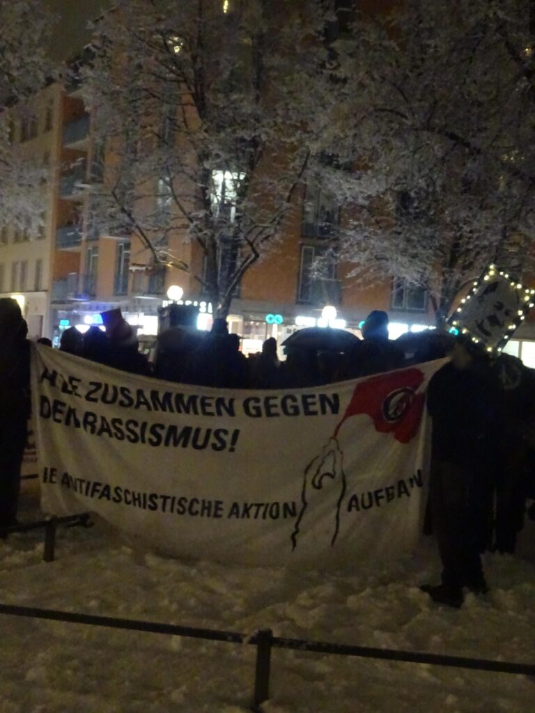 In diesem Jahr werden wir daher auch in den nächsten Monaten besonders dazu arbeiten. Alle gemeinsam wiederholten wir die Namen der zehn Verstorbenen aus Hanau und der neun Ermordeten des Olympia Einkaufszentrum. Wir zeigten unsere Einheit im antifaschistischen Kampf.