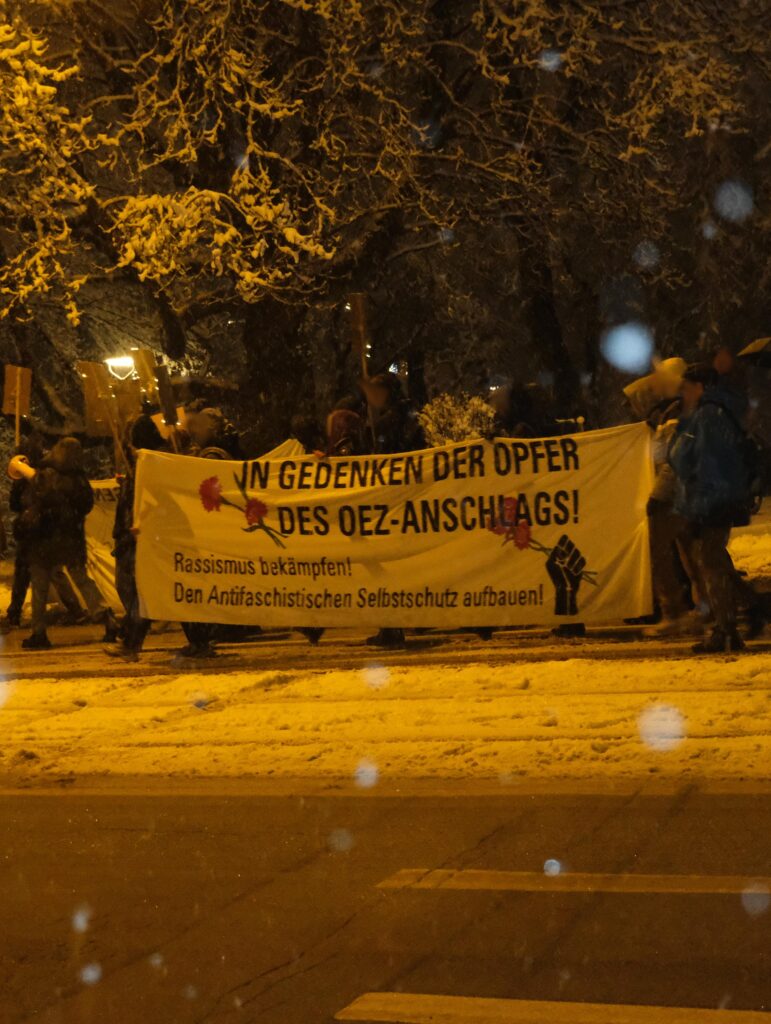 Dass die Polizei auch an diesem Jahrestag die Demonstration zwischenzeitlich aufhielt und es sich am Ende nicht nehmen lies noch zwei Festnahme durchzuführen, ist wenig überraschend, aber dennoch mal wieder ein Hohn für alle, die immer wieder auf die Straße gehen und die Namen und das Gedenken in Erinnerung halten.