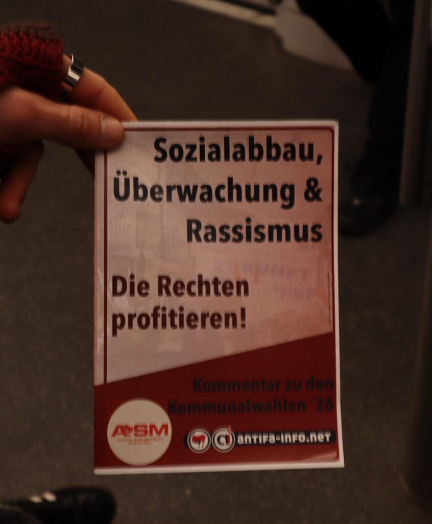 Wollt auch ihr aktiv werden? Ihr findet die Plakatvorlagen und den Flyer auf unserer Website unter: https://asmuc.noblogs.org/post/2026/02/13/sozialabbau-uberwachung-rassismus-die-rechten-profitieren-ein-kommentar-materialien-zu-dem-kommunalwahlen-26/